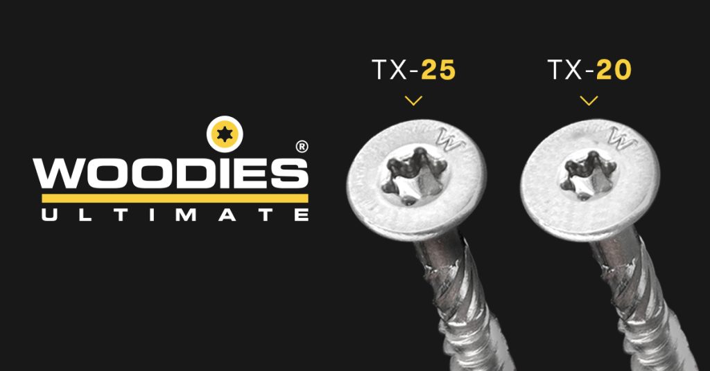 Woodies® Ultimate universal screws 5-series available in TX-20 and TX-25